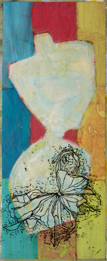 Fahnen 7, 2015, Acryl, Ölzeichnung auf Papier, 77 x 32 cm