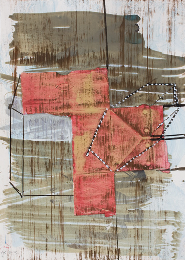 Umgänge rot, 2013, Acryl, Tusche, Papier auf Papier, 42 x 30 cm