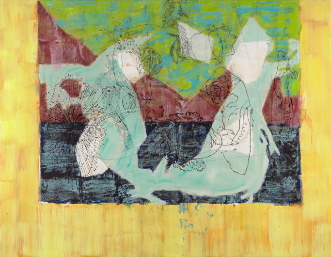 Metronome Ströme, 2007, Öl, Tusche auf Leinwand, 140 x 180 cm