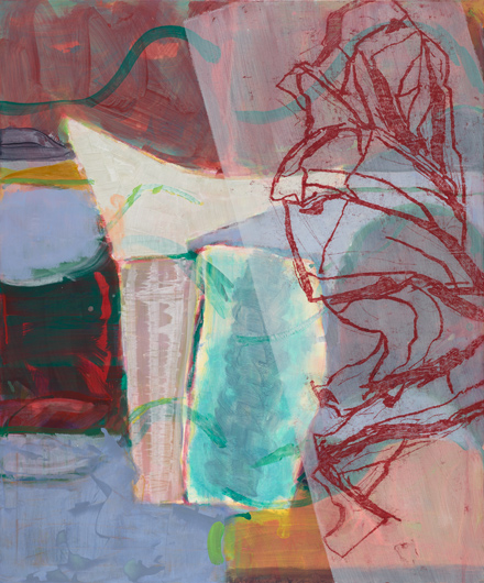 Felder Umschrittenwerden 9, 2017, Acryl, Ölzeichnung auf Leinwand, 120 x 100 cm