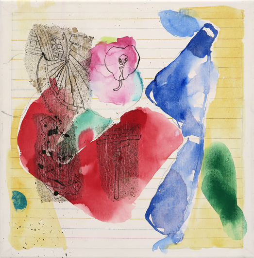 Im Schatten Sommersprossen bekommen 5, 2019, Aquarell, Farbstift, Tusche auf Leinwand, 44 x 44 cm