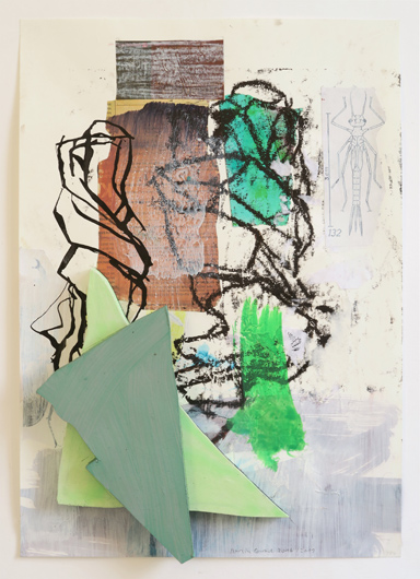 Wie Wind auf Bergen C, 2016-19, Acryl, Ă–lzeichnung, Holz, Papier auf Papier, 42 x 30 x 2,8 cm