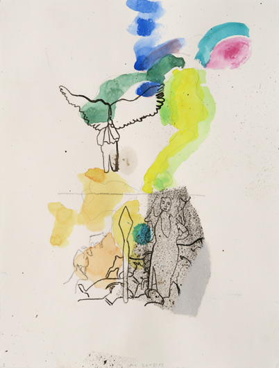 Im Schatten Sommersprossen bekommen E, 2019, Aquarell, Bleistift, Tusche auf Papier, 32 x 24 cm