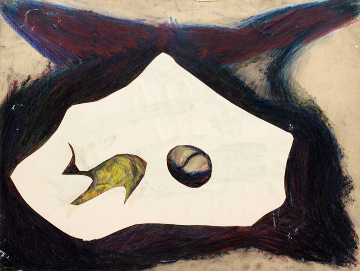 Winterlicht 5 Brot, 1980, Acryl, Farbstift, Zeichenkreide, Papier auf Papier, 36 x 48 cm