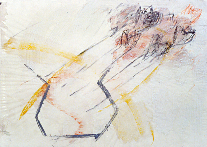 FormZiehendeBlüten, 1982, Acryl, Kohle, Lack auf Transparentpapier, 30 x 42 cm