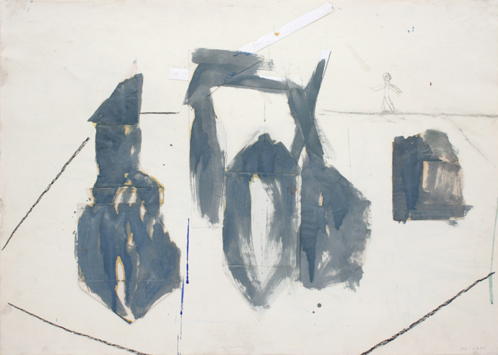 FigurPalast 2, 1982, Kohle, Lack, Papier auf Papier, 60 x 84 cm