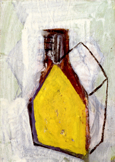 HausSchornsteinGelb, 1983, Acryl, Farbkreide, Kohle, Lack auf Papier, 30 x 21 cm