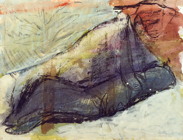 FigurWachstumFormViolett, 1984, Acryl, Bleistift, Kohle auf Papier, 47 x 61 cm